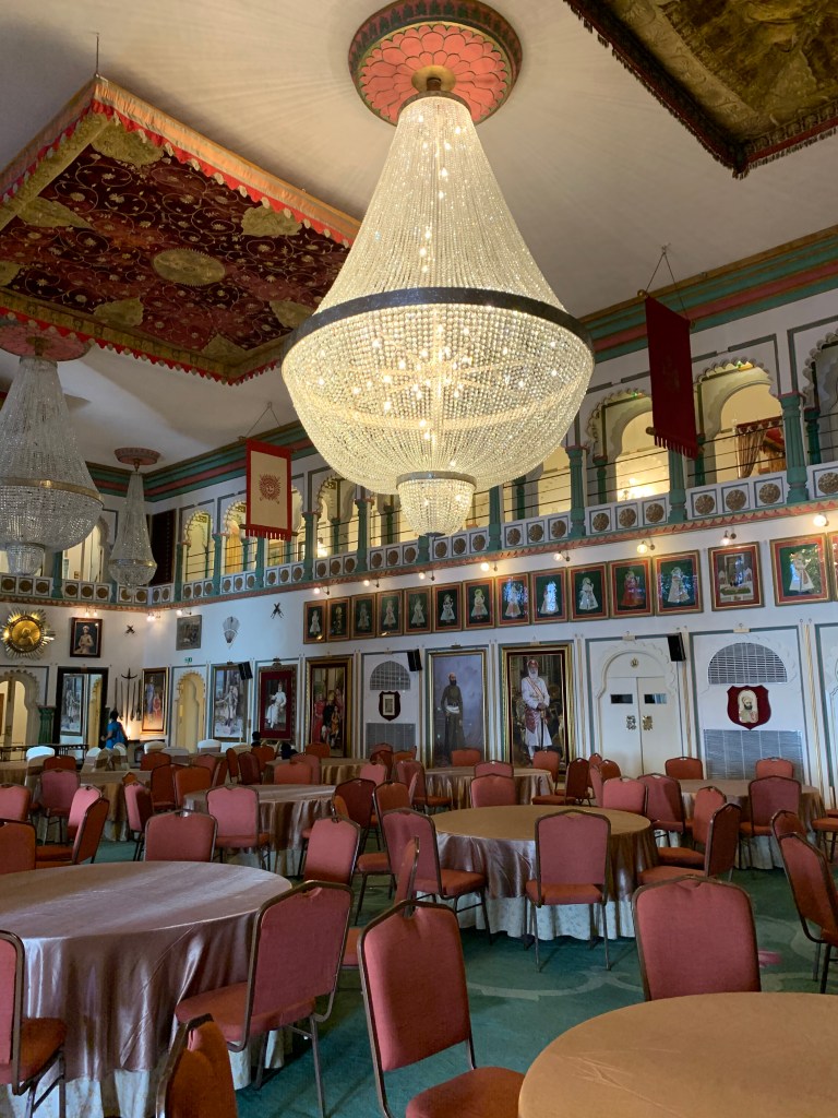 The next place we visited where photography was strictly forbidden was the Crystal Gallery within the premises of the City Palace, Udaipur. To enter the Crystal Gallery, one has to pay a fat entrance fee and pass through a large, luxurious hall where hang the portraits of some of the past and present Maharanas. An audio guide helps you along your way, imparting snippets of information about how the crystal collection came into existence. Apparently, the crystals were ordered by Maharana Sajjan Singh in 1877 from a company in Birmingham. Unfortunately, he passed away before the crystals could arrive and they sat around in their boxes for the next 110 years. The ruler who followed him was known for leading a simple and austere life and was not interested in eating off crystals or sleeping on a crystal bed.