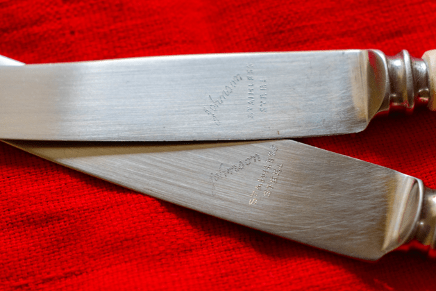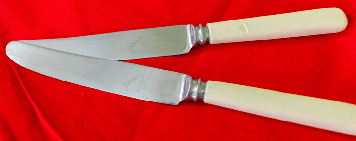 Or maybe not. One doesn’t see or use too many table knives around nowadays. And these ones, in spite of years of neglect and disuse seemed to have borne up remarkably well. So, I asked my mother about their antecedents and was told that she had bought them at the time of her marriage. Which made them older than me. And that they had been bought from one of those high-end shops in Connaught Place, Delhi. My impression of them went up a few more notches. And then I saw the brand name neatly engraved on the blades. A Google search revealed that the knives were manufactured by Christopher Johnson & Co, a company based in England, which had been making cutlery since 1865. Well!! Some more digging around revealed that they are called ‘Faux Bone Handled Knives’ I felt a pang of regret that the knives hadn’t been kept more carefully. Yeah, yeah, we appreciate something only after it’s lost and all that. In my case, it took me a little more than half a century!