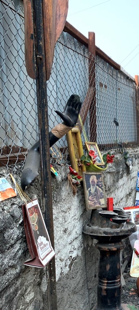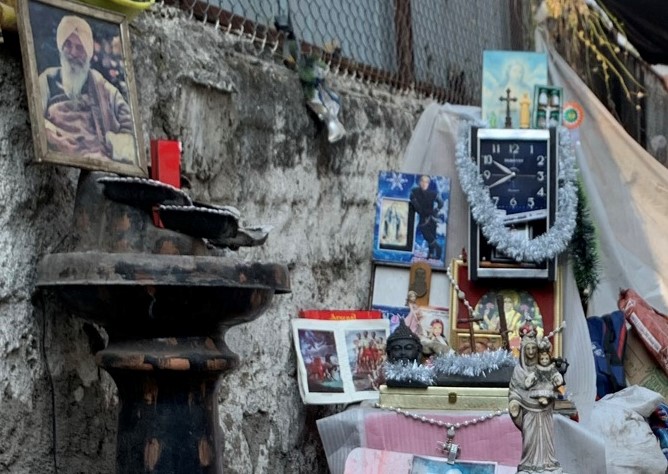 The setting was more grimy than fancy, there was a pile of waste at the back and a rough, concrete wall to one side. But as we looked a little more carefully, we noticed pictures, idols and objects that are used in prayer- all arranged in some kind of order.