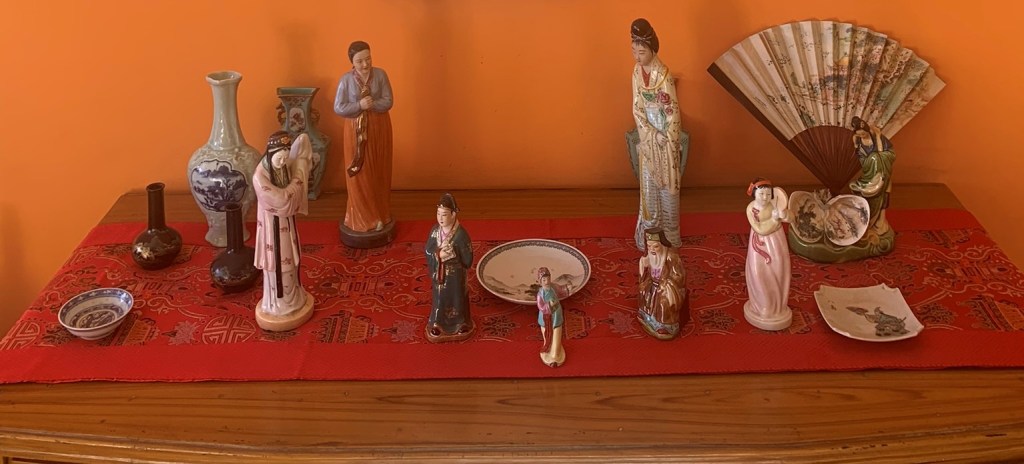 I have now brought these figurines to stay with me and given them pride of place in my living-room. I have no idea who or what they represent, nor do I care if they have any monetary or artistic value. They were bought by my dad, all the way from China, all those many years ago. That makes them invaluable for me.