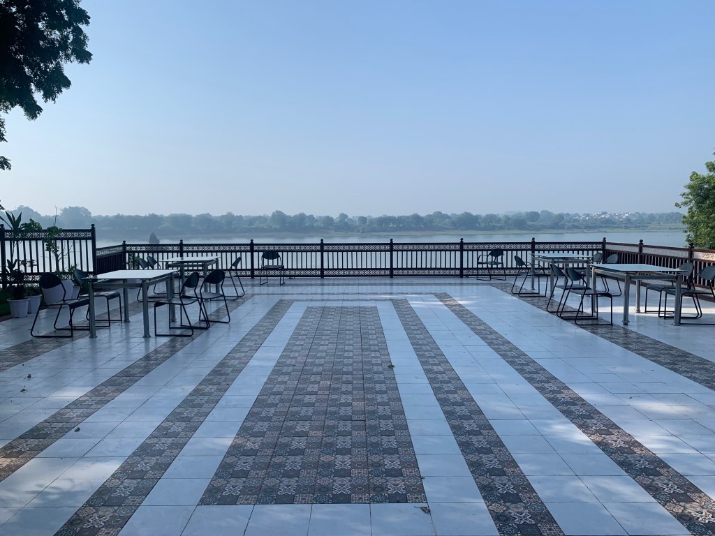 The staff at the resort were impervious to our requests for a couple of rooms just for two nights. While the agent and the staff argued it out, we wandered the grounds of the resort, admired the cottagey-style rooms, their gardens, the beautiful terrace overlooking the river flowing serenely by and sighed in despair. It was not to be.
