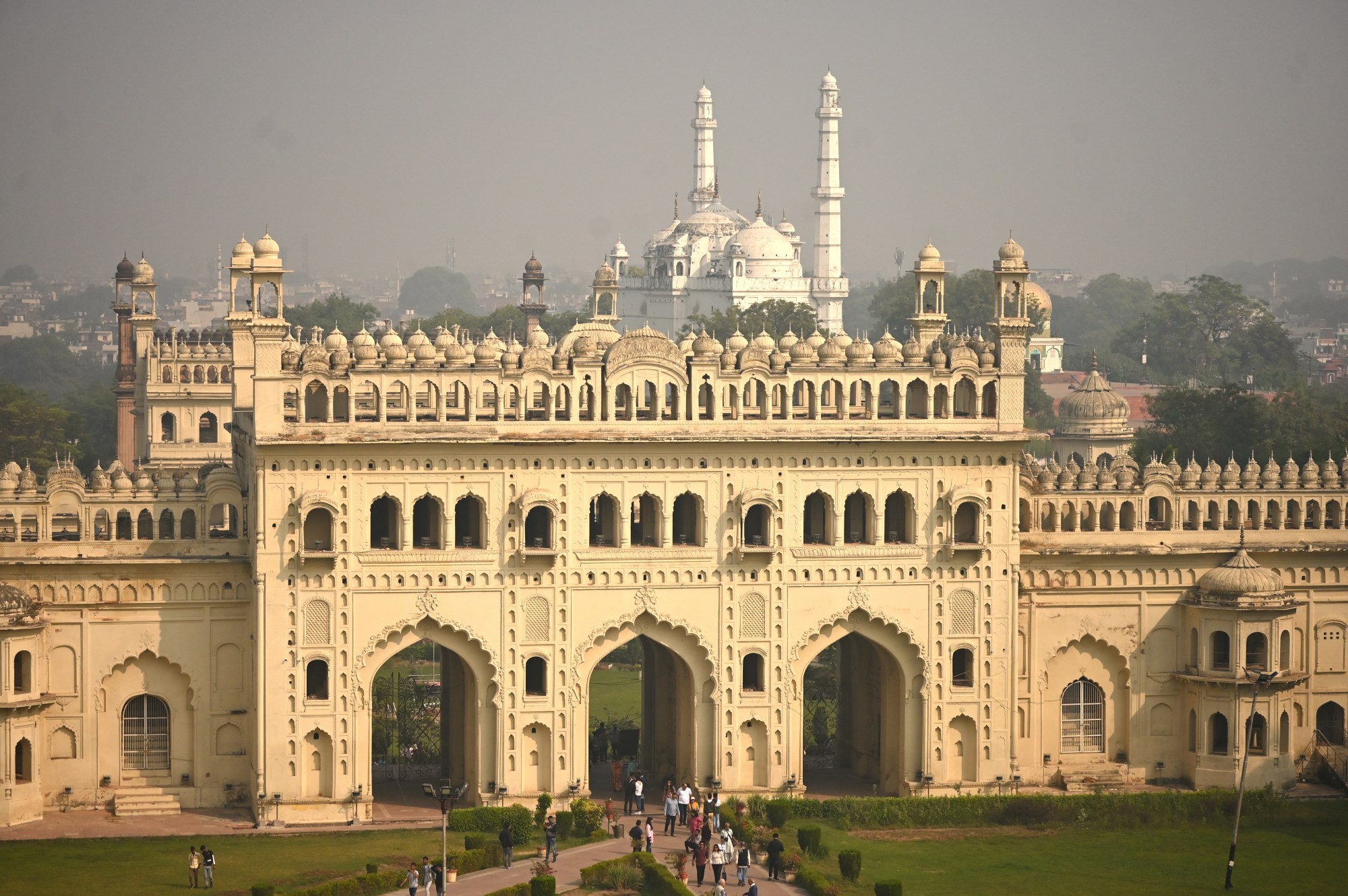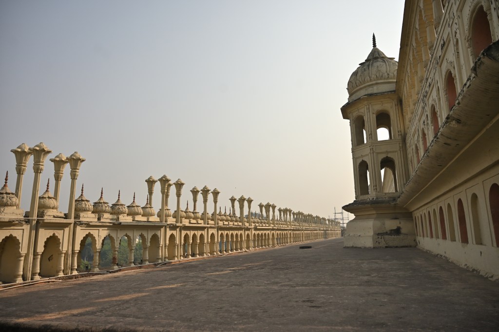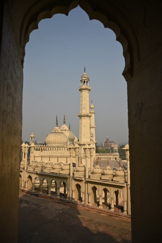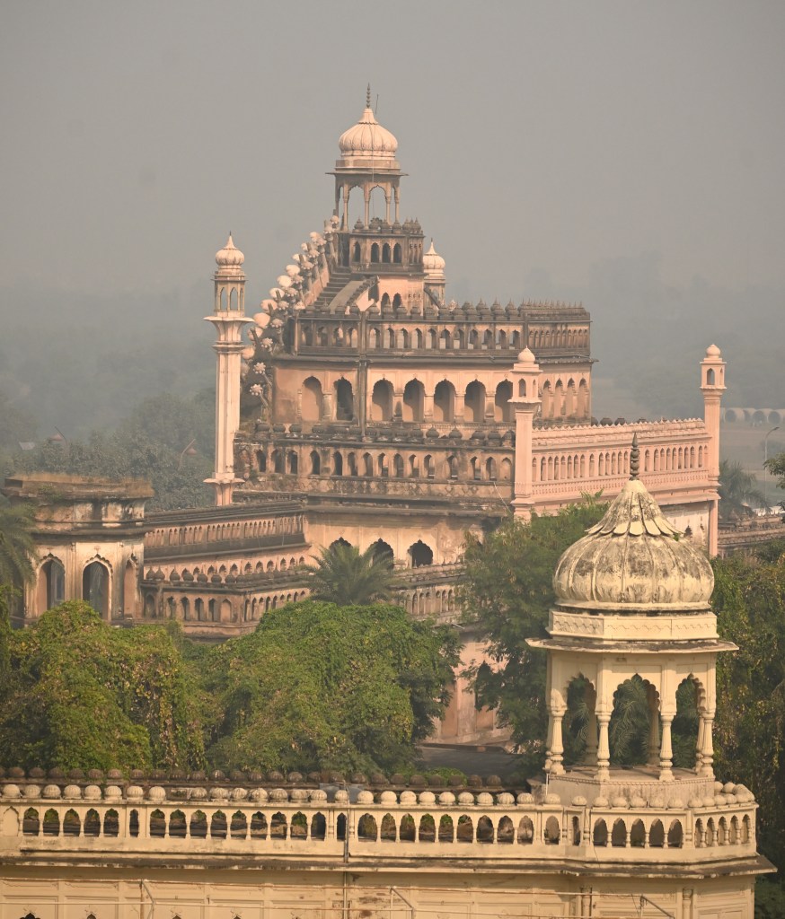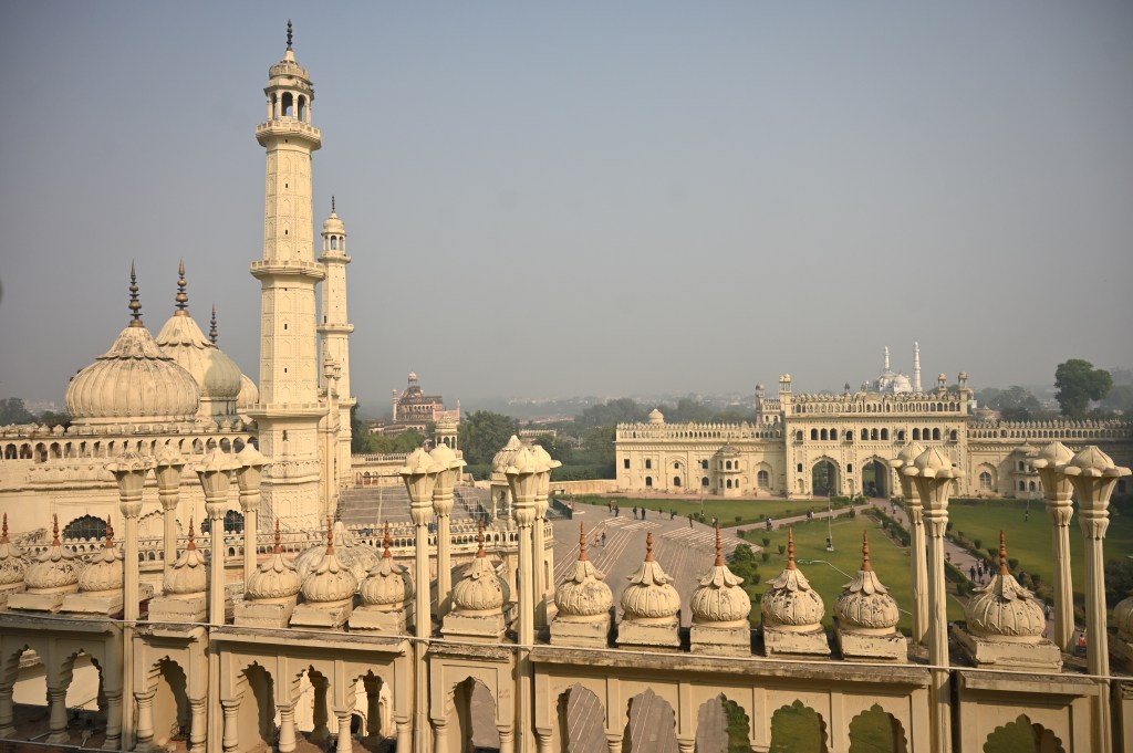 From the rooftop of the imambara one can see various other domes and minarets that make up the skyline of Lucknow now marred by 21st century granite high rise buildings.